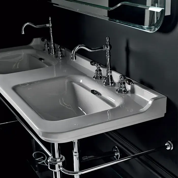 Kerasan Waldorf Раковина двойная 150х55 см, с 3 отверстиями под смеситель и заглушкой, цвет: Bianco 4143K1bi/cr*3