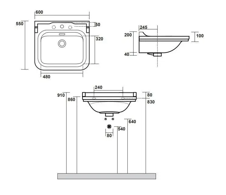 Kerasan Waldorf Раковина подвесная 60x55 см, с 3 отверстием под смеситель и заглушкой, цвет: Bianco 4140K1bi/cr*3