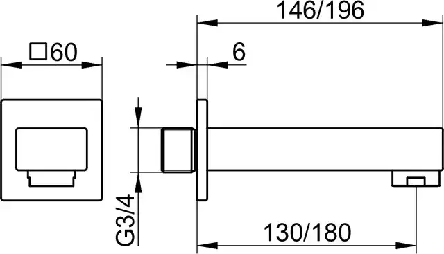 Keuco Edition 11 Излив для ванны 6x6x14h см, цвет: хром 51145 010000
