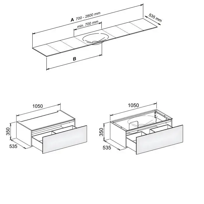 Keuco Edition 11 Planning База 105х53,5хh70 см, с 2 выдвижными ящиками, белый матовый 31316 380000
