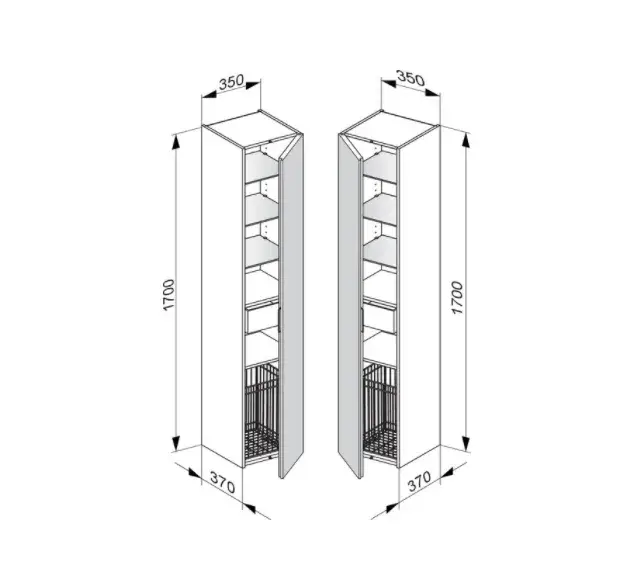 Keuco Edition 11 Шкаф-пенал подв., 3 стекл. полки, с корзиной 35x37x170h см, дуб светлый 31331 890001