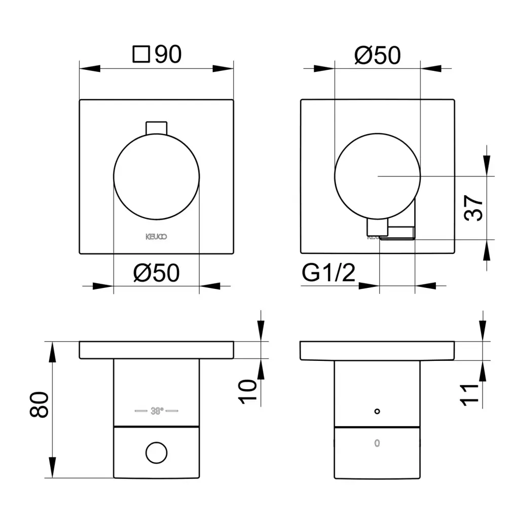 Keuco Edition 11 Смеситель для душа термостатический, 2 потреб., встр., внешняя часть, цвет: латунь 51153 251122