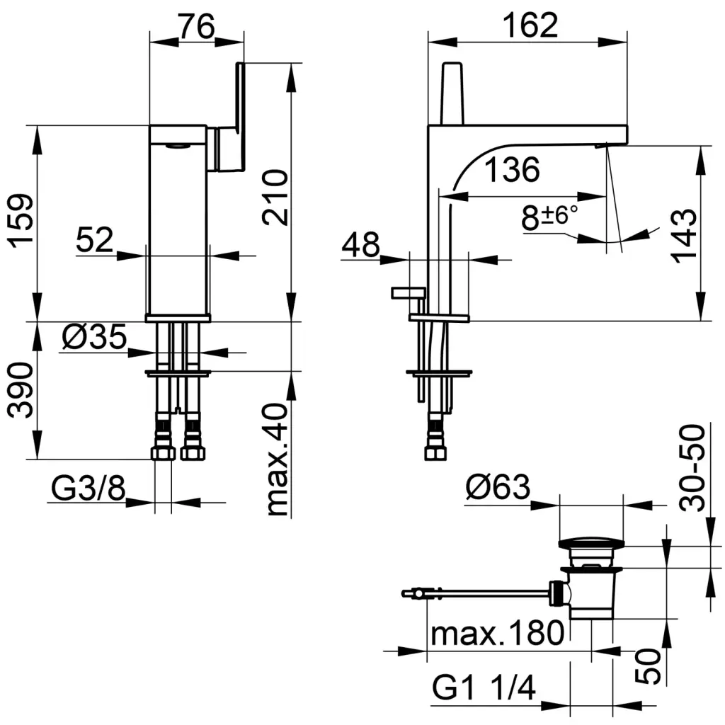 Высота излива, см