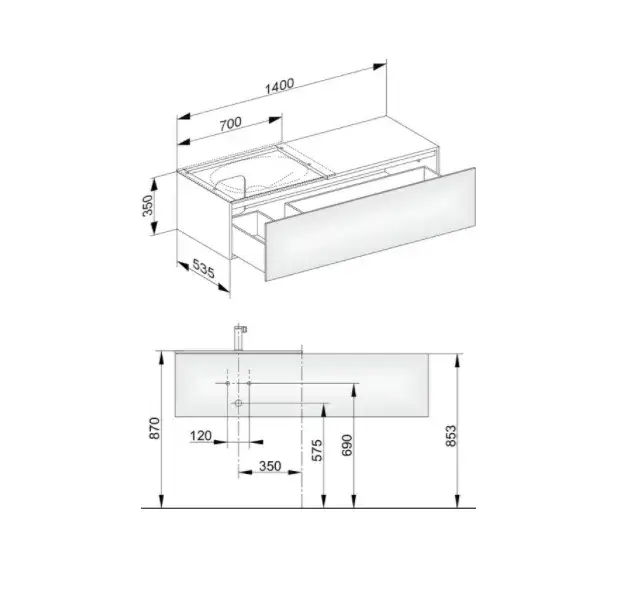 Keuco Edition 11 Тумба под раковину, подв. с внутр. подсветкой 140x53,5x35h см, черный 31165 570100