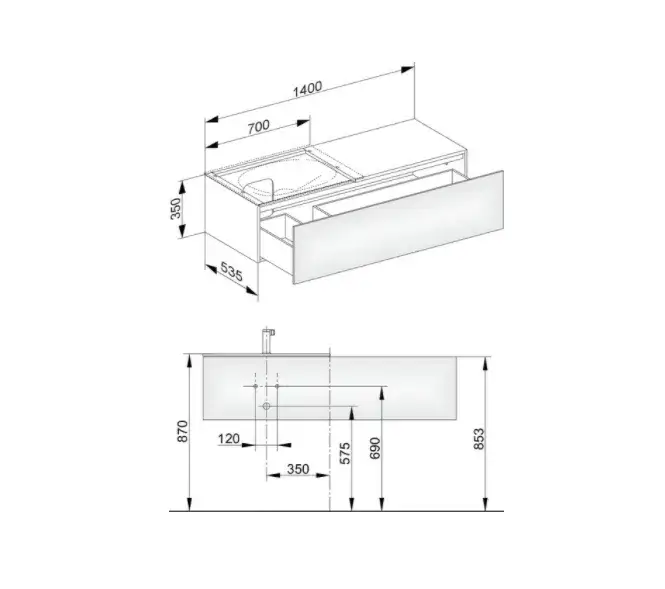 Keuco Edition 11 Тумба под раковину, подв. с внутр. подсветкой 140x53,5x35h см, антрацит 31165 110100