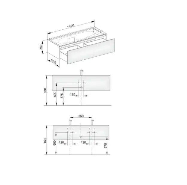Keuco Edition 11 Тумба под раковину, подв. с внутр. подсветкой 140x53,5x35h см, антрацит 31361 390100