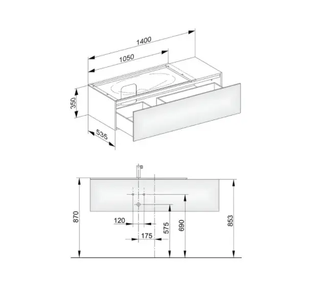 Keuco Edition 11 Тумба под раковину, подвесная 140x53,5x35h см, цвет: черный 31163 570000