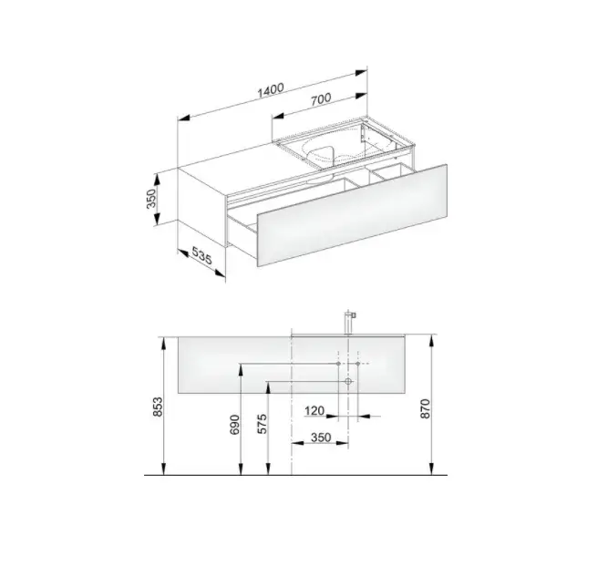 Keuco Edition 11 Тумба под раковину, подвесная 140x53,5x35h см, цвет: белый 31166 210000