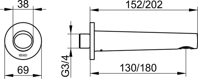 Keuco Edition 400 Излив для ванны 6,9x6,9x20,2h см, цвет: хром 51545 010001