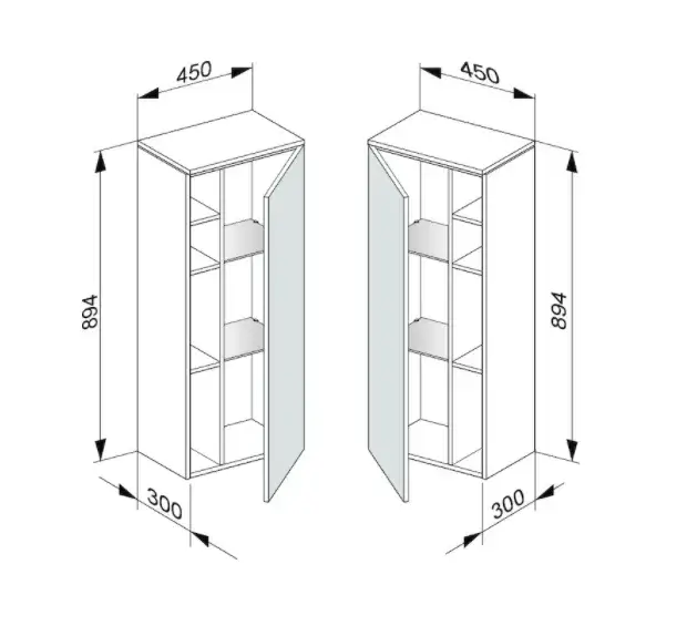 Keuco Edition 400 Шкаф средний подв., 2 стеклянные полки 45x30x89,4h см, дуб антрацит 31725 860001