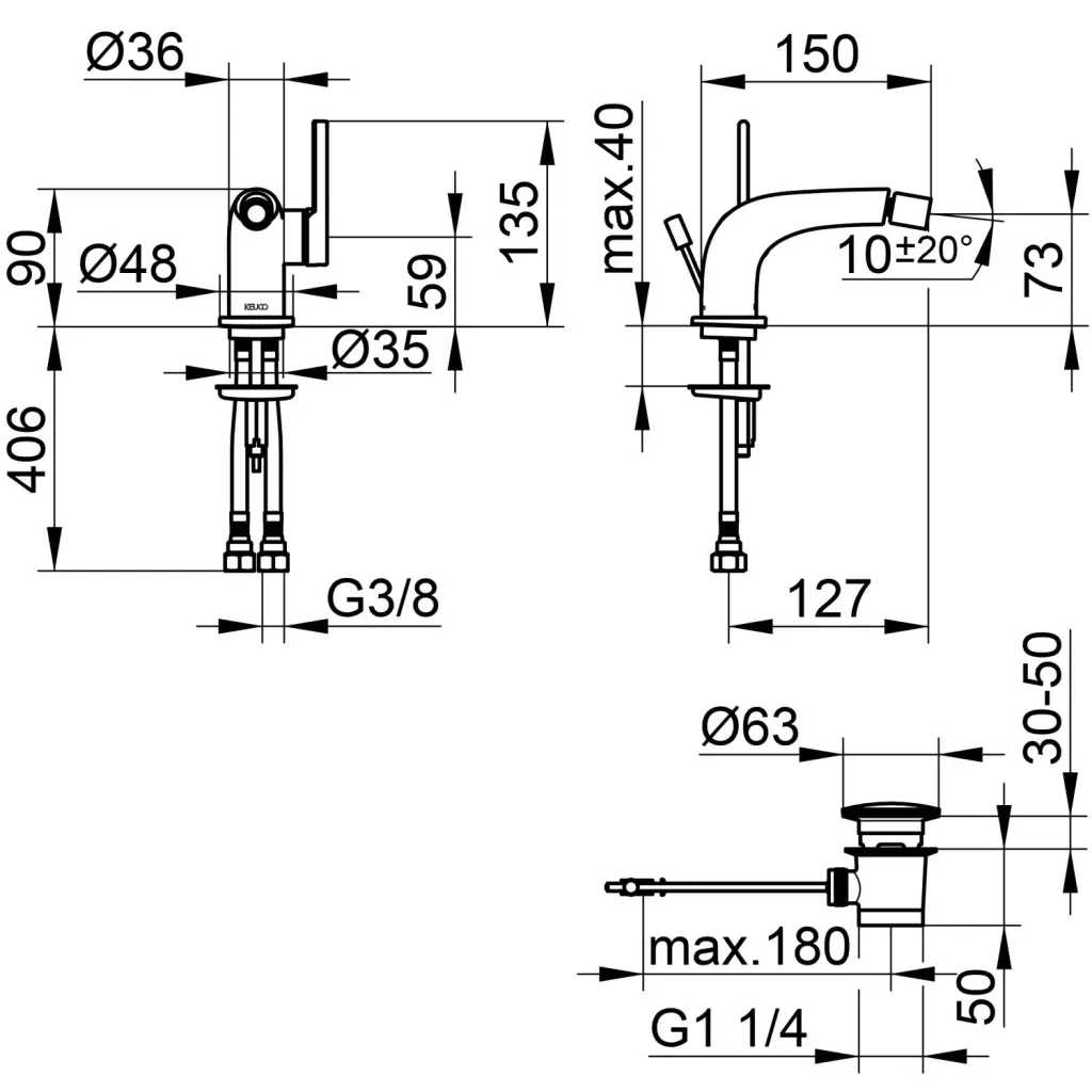 Keuco Edition 400 Смеситель для биде, с донным клапаном G1 1/4, цвет: титан черный 51509 350000