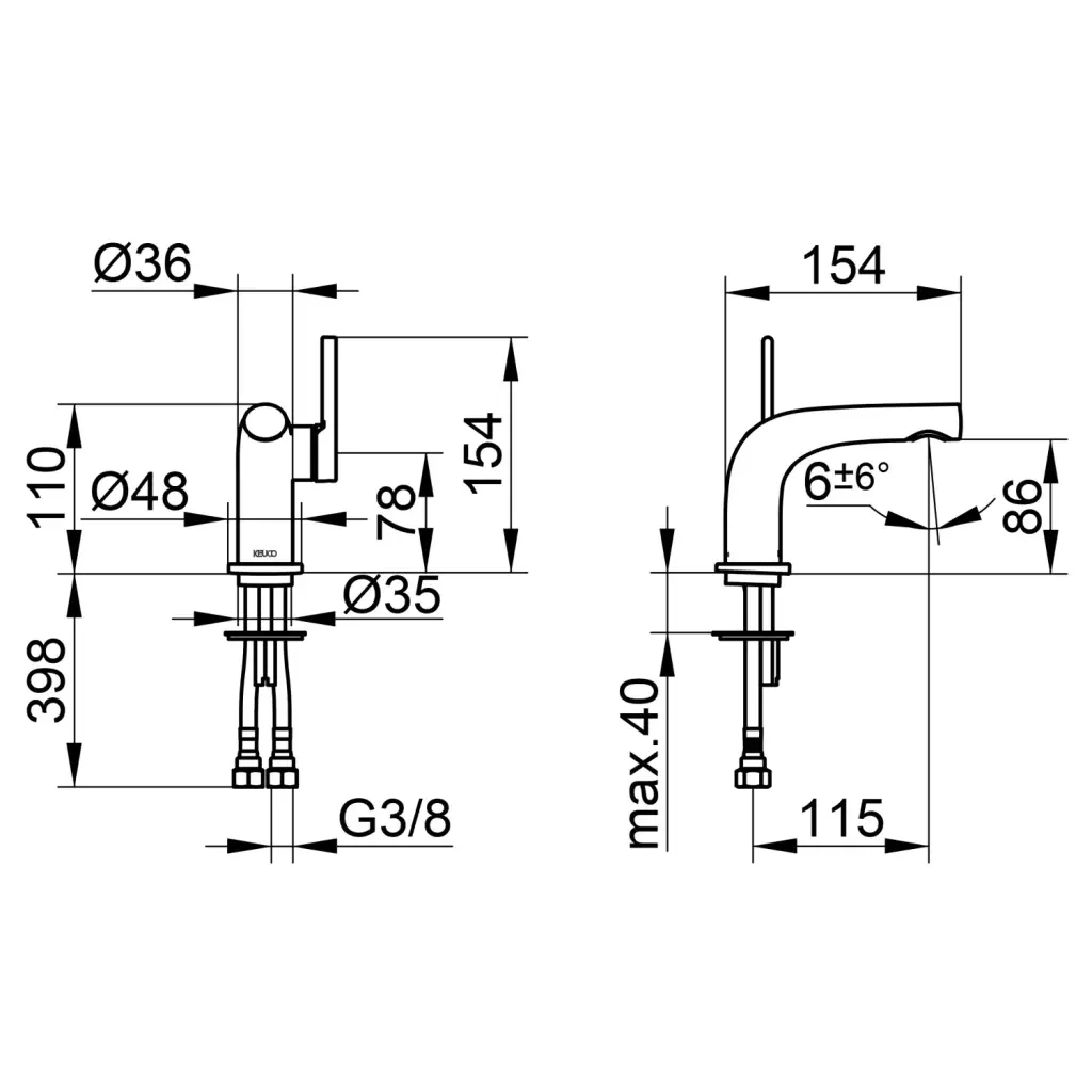 Keuco Edition 400 Смеситель для раковины рыч. 80, без д/к и гарнитура для слива, цвет:нерж. сталь 51504 210100