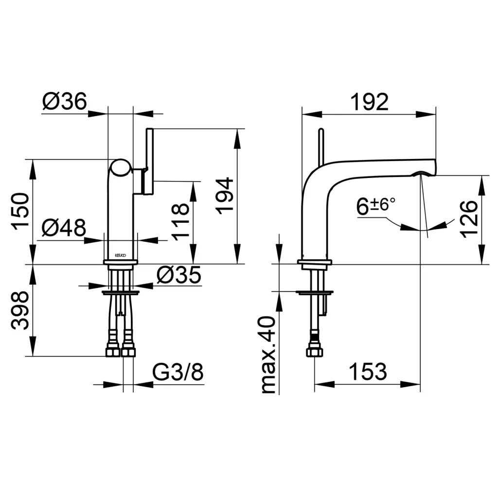 Keuco Edition 400 Смеситель для раковины рычажный 120, без д/к и гарнитура, цвет: титан черный 51504 350102