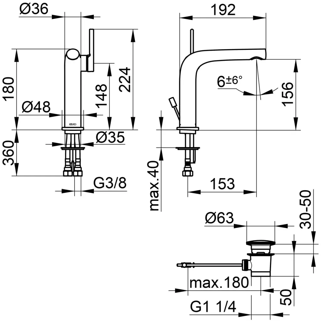 Keuco Edition 400 Смеситель для раковины рычажный 150, с д/к и гарнит. слива, цвет: красное зол. 51502 290000