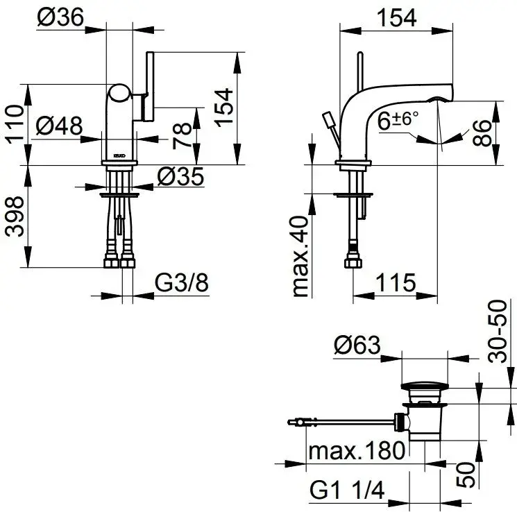 Keuco Edition 400 Смеситель для раковины рычажный, с донным клапаном, цвет: хром 51504 010000