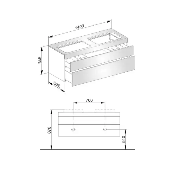 Keuco Edition 400 Тумба под 2 раковины, 2 ящика, подвесная 140x53,5x54,6h см, белый 31574 380000