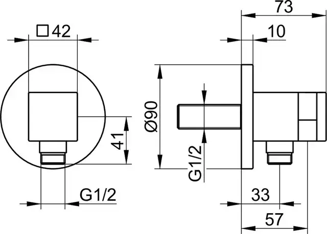Keuco Edition 90 Вывод для шланга с держателем душевой лейки 9x9x7,3h см, цвет: хром 59092 010001