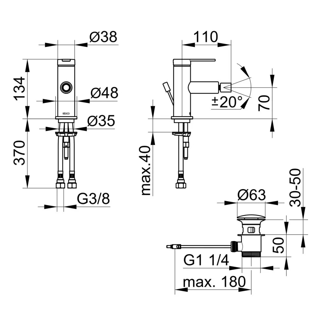 Keuco Ixmo Смеситель для биде, с донным клапаном G1 1/4, цвет: латунь 59509 253000