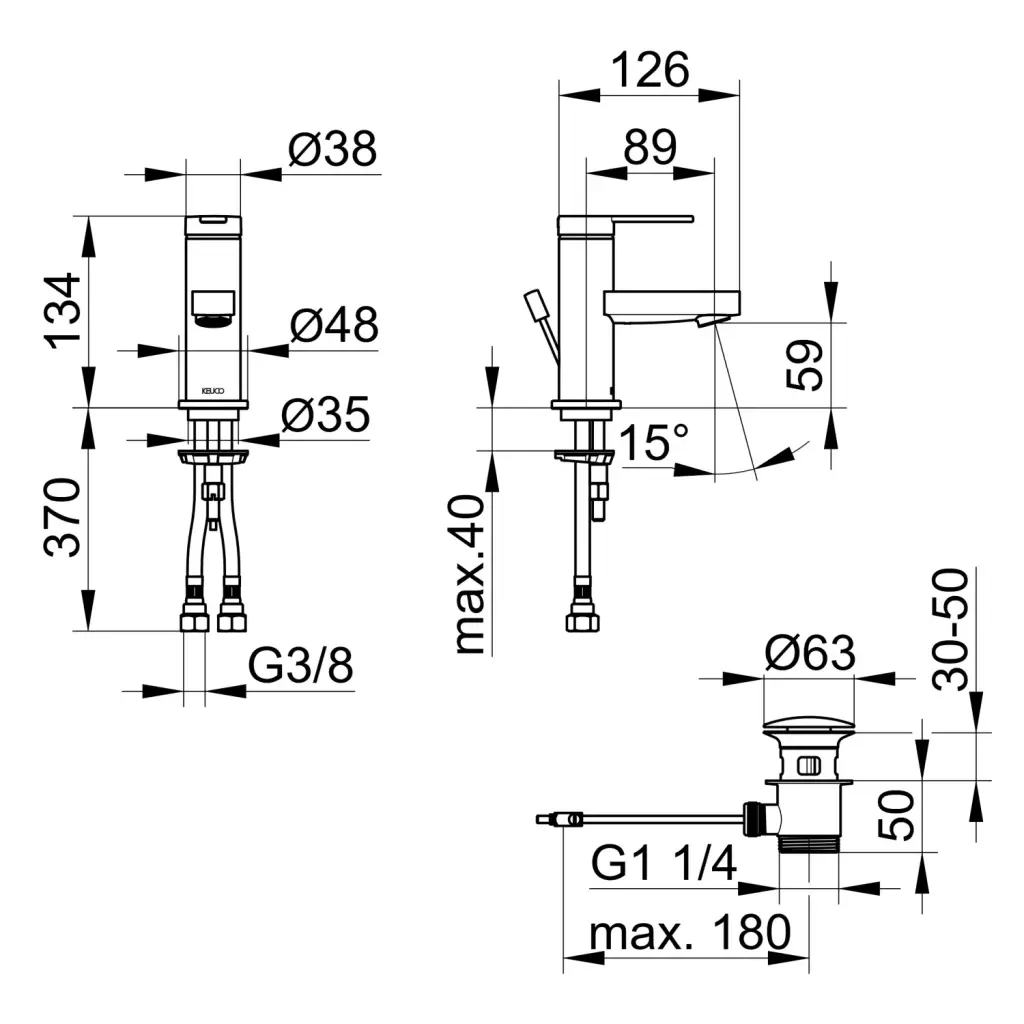 Keuco Ixmo Смеситель для раковины рычажный 60, с д/к и гарнитуром для слива, цвет: титан черный 59504 353000