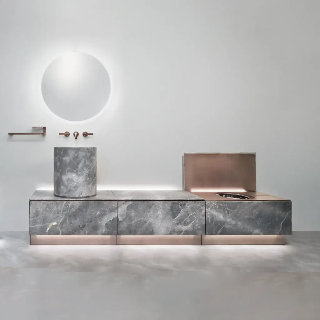 Комплект мебели с раковиной CEA ABACO ABC022FZS+WBN08F+ABC050FZS+ABC011FZS мрамор FIOR DI BOSCO/BRONZE SATIN
