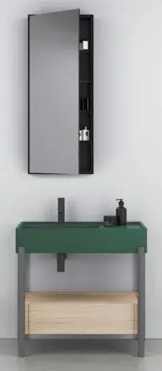 Консоль для ванной комнаты Cielo PLINIO PNST85.NM+PNLA85.MU+PIL01NM.MU+SIFN+PNC85E.RS+SPSTB.NM матовый черный/MUSCHIO/ROVERE SBIANCATO