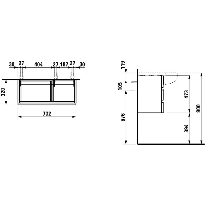 Laufen Alessi One Тумба под раковину напольная, 2 ящика 50х80х33h см, цвет: белый 4.2403.3.097.631.1