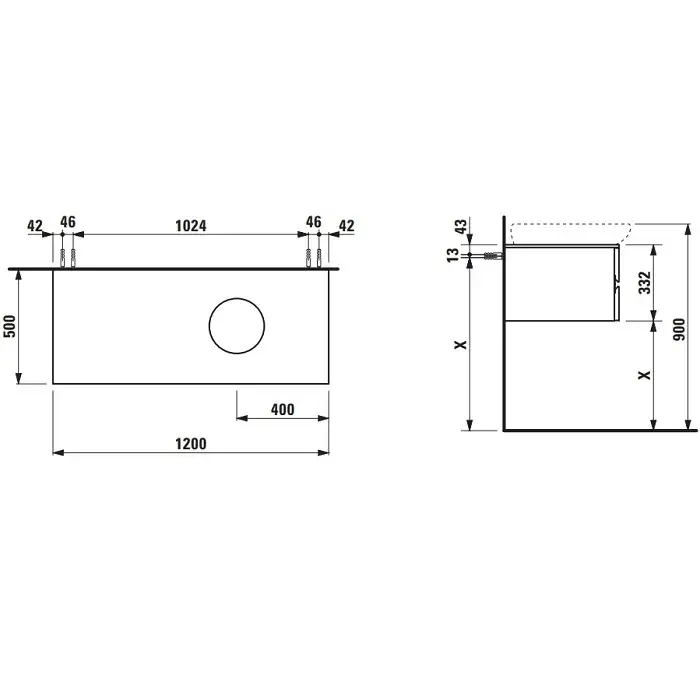 Laufen Alessi One Тумба под раковину напольная, 2 ящика 50х80х33h см, цвет: белый 4.2403.3.097.631.1