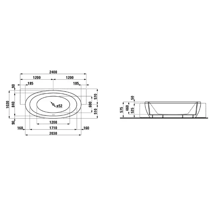 Laufen Alessi One Ванна 203x102xh46 см, полувстр., материал акрил, цвет белый 2.4497.0.000.000.1