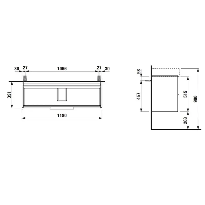 Laufen Base База под раковину 118x39xh53 см, 2 ящика, цвет: белый глянцевый 4.0247.2.110.261.1