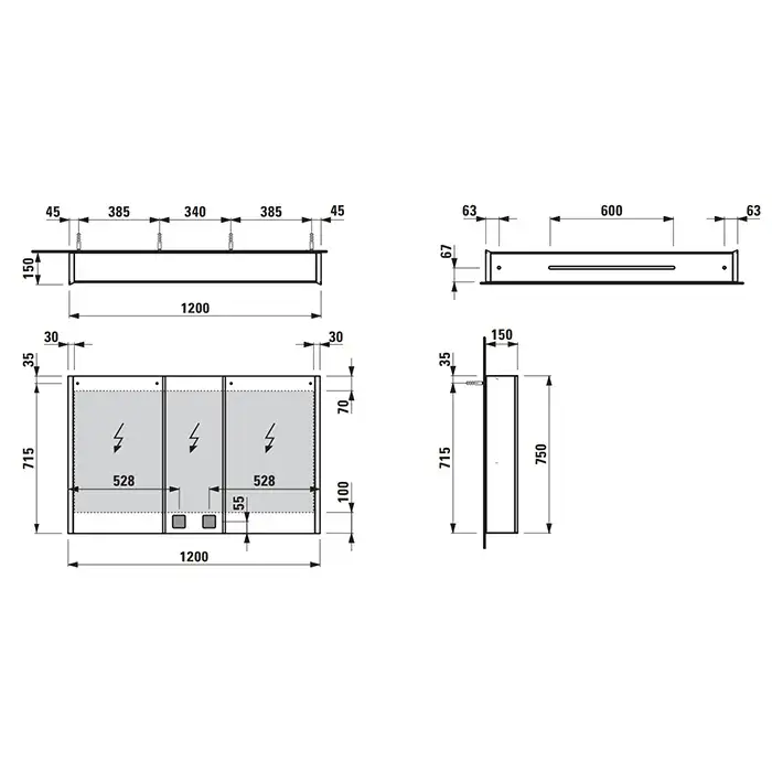 Laufen Frame 25 Зеркальный шкаф 120х15хh75 см, 3 двери, цвет: mirror 4.0885.4.900.144.1