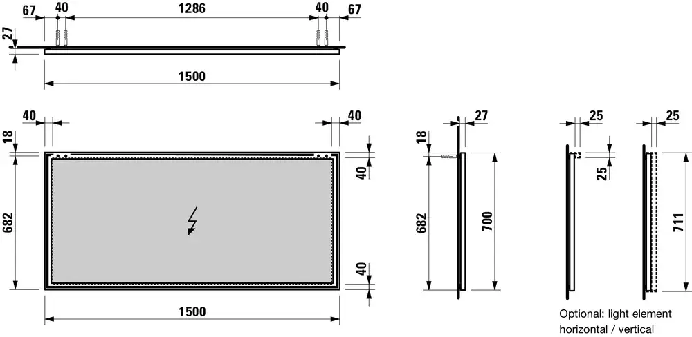Laufen Frame 25 Зеркало прямоугольное без подсветки, подвесное 150х3х70h см, 4.4740.9.900.144.1