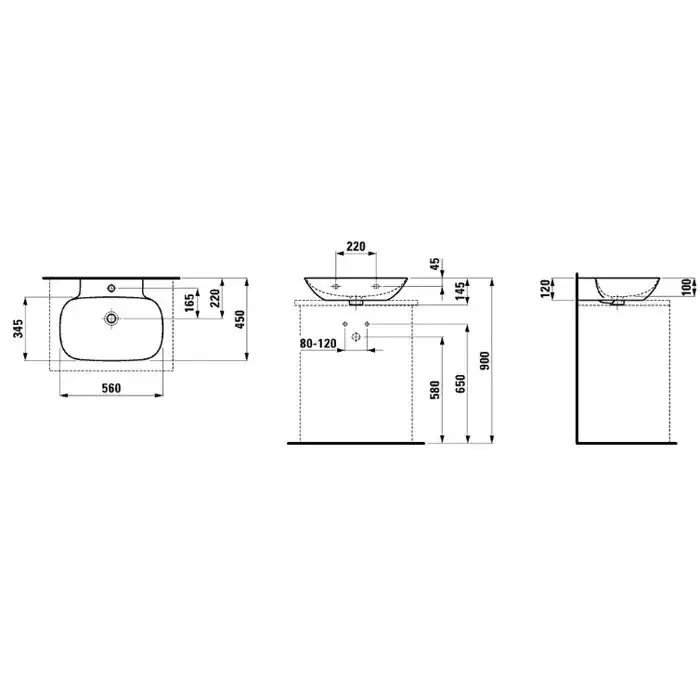 Laufen Ino Раковина 56х45хh12 см, без отв., под смеситель, цвет: белый 8.1630.2.000.109.1