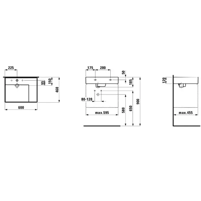 Laufen Kartell Раковина 60х46хh12 cм, с 1 отв., полка справа, цвет белый 8.1033.4.000.814.1