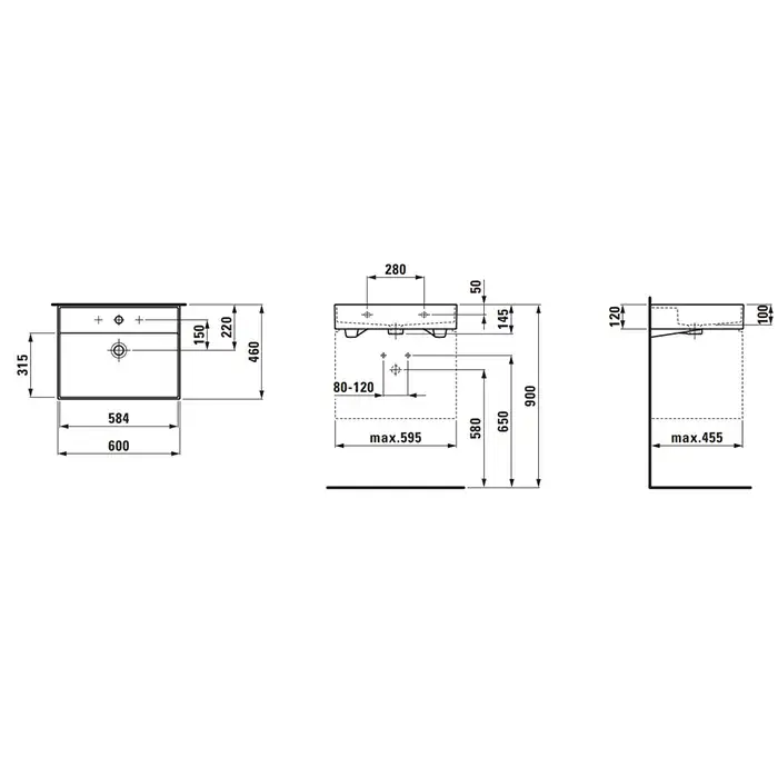 Laufen Kartell Раковина 60х46хh12 см, без отв., под смеситель, цвет: белый мат. 8.1033.3.757.109.1