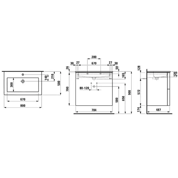 Laufen Kartell Тумба с керам. рак. цвет белый 80х50хh72,5 см, цвет шиферный 8.6033.5.642.104.1