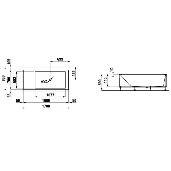 Laufen Kartell Ванна 170x86xh44 cм, встр., DX, материал композит, цвет белый 2.2333.1.000.616.1