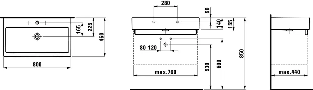 Laufen Living City Раковина 80х46хh14 см, с 3 отв., под смеситель, цвет: белый 8.1743.6.000.108.1