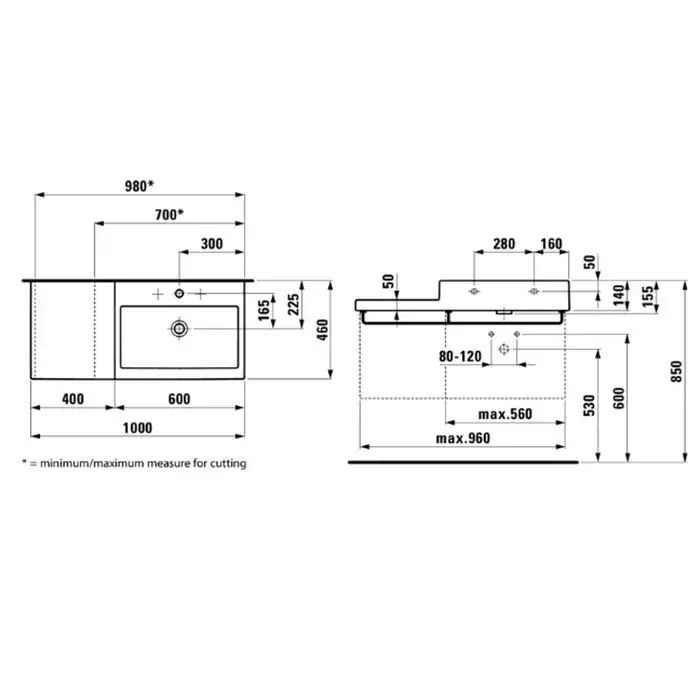 Laufen Living City Раковина-столешница 130х48 см, цвет: белый 8.1643.6.000.107.1