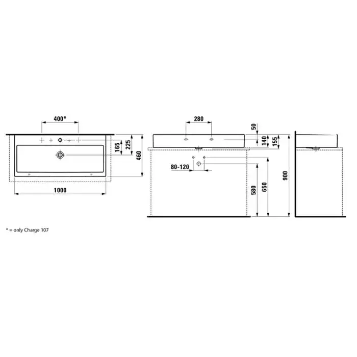 Laufen Living City Раковина 100х46хh14 см, с 3 отв., под смеситель, цвет: белый 8.1843.2.000.108.1