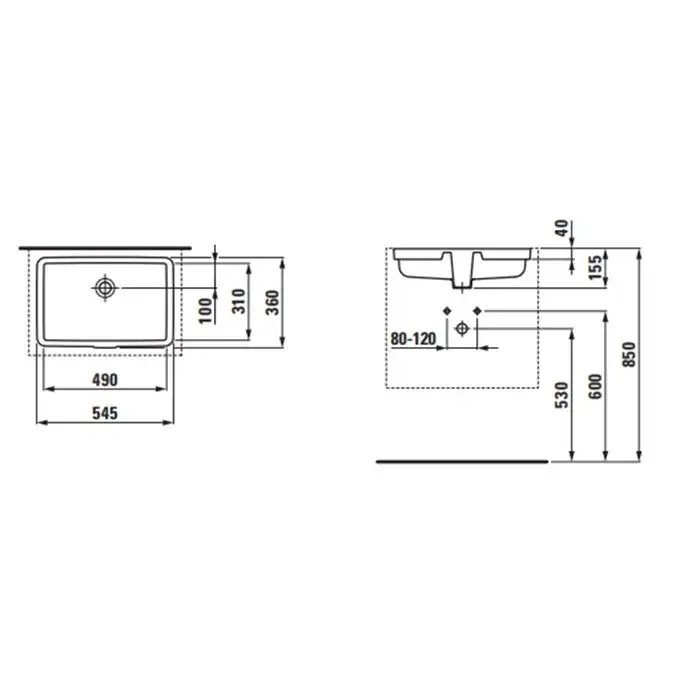 Laufen Living City Раковина встраиваемая снизу прямоуг. 40х33х17h см, цвет: белый 8.1243.2.000.155.1