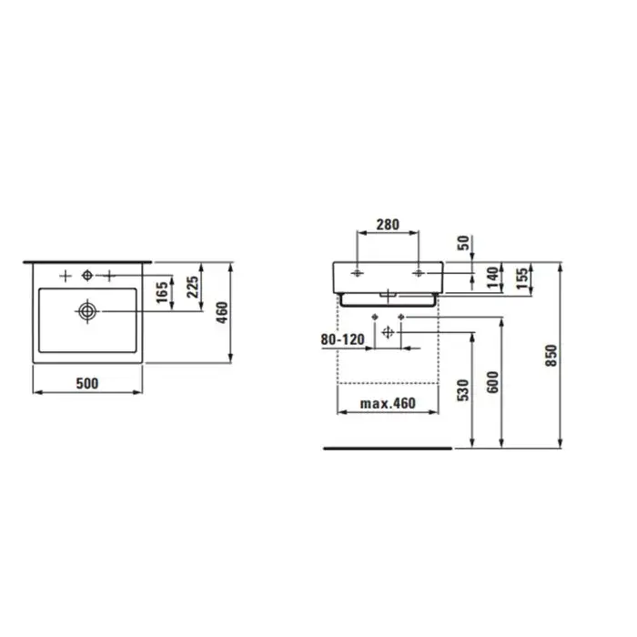Laufen Living City Раковина 50х46хh14 см, с 3 отв., под смеситель, цвет: белый 8.1743.2.000.108.1