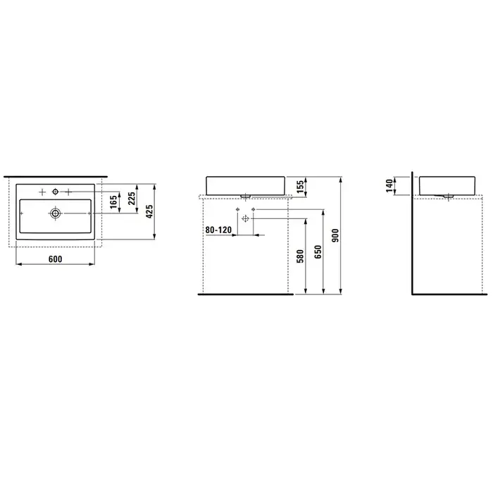 Laufen Living City Раковина 60x42,5хh14 см, с 1 отв. под смеситель, цвет белый 8.1143.2.000.104.1