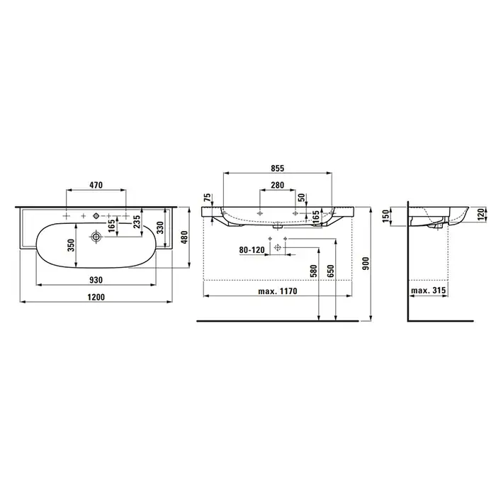 Laufen New Classic Раковина 120х48хh7,5 см, с 3 отв., под смес., цвет: белый мат. 8.1385.8.757.158.1