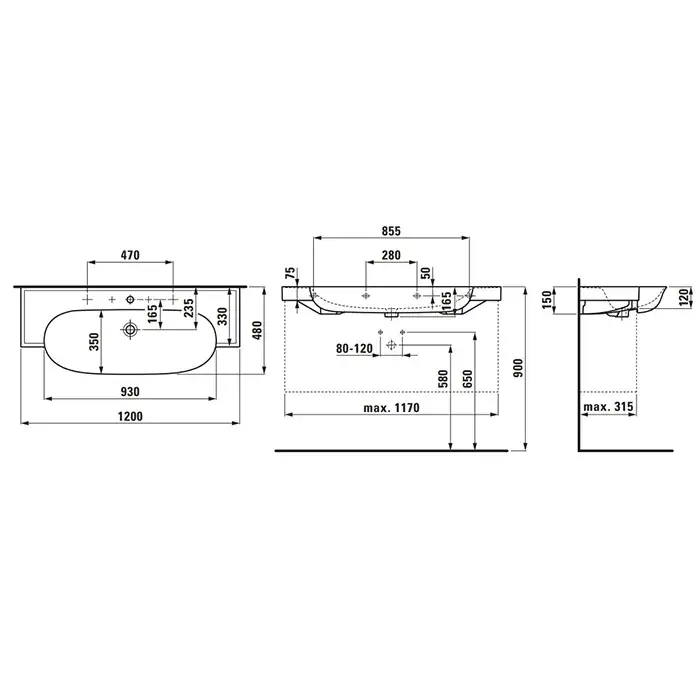 Laufen New Classic Раковина 120х48хh7,5 см, с 3 отв., под смеситель, цвет: белый 8.1385.8.400.158.1