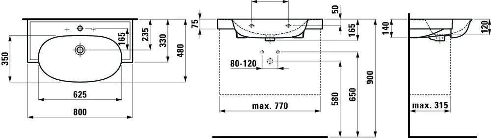 Laufen New Classic Раковина накладная 80х48хh16,5 cм, без отв., цвет белый 8.1385.5.000.109.1