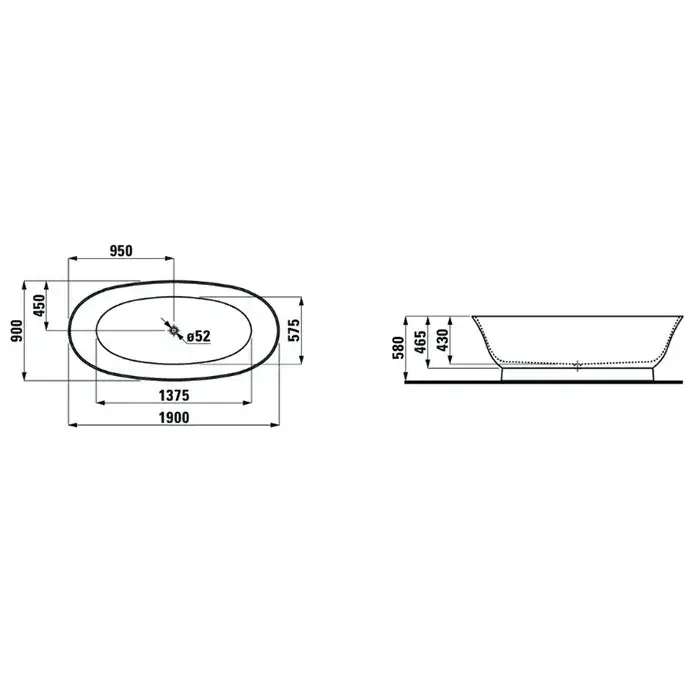 Laufen New Classic Ванна 190x90xh58 см, свободност., материал Sentec, цвет белый 2.2085.2.000.000.1