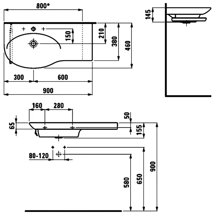 Laufen Palace Раковина на столешницу 90х46хh6,5 cм, столеш. справа, цвет белый 8.1670.2.000.104.1