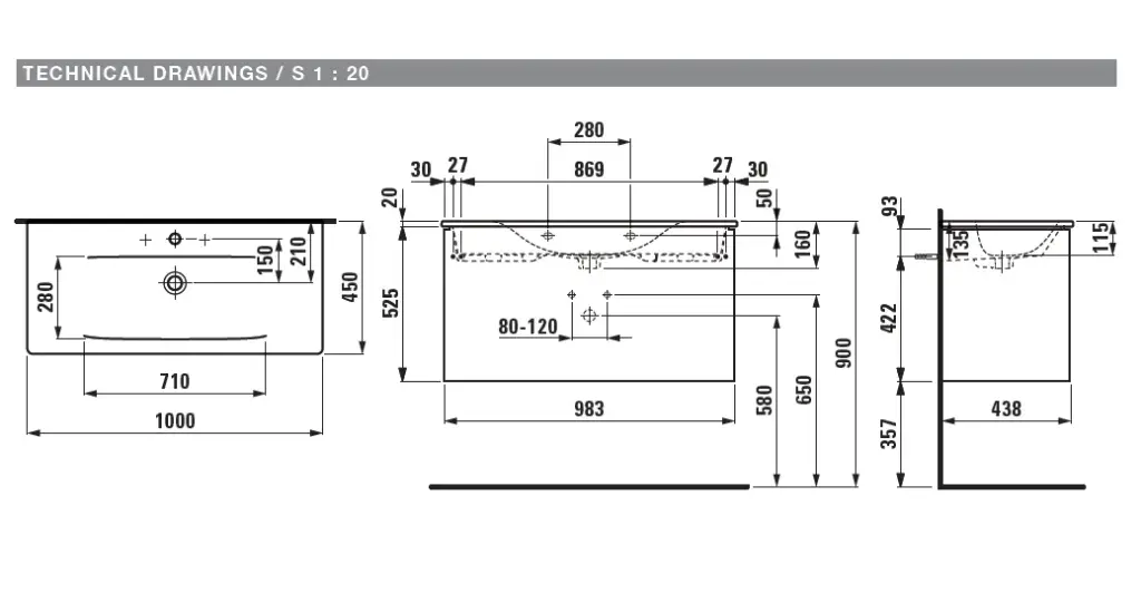Laufen Palace Тумба с раковин., 2 ящ. 100х45х54h см, цвет: gres pietra grey opaco 8.6170.7.260.104.1