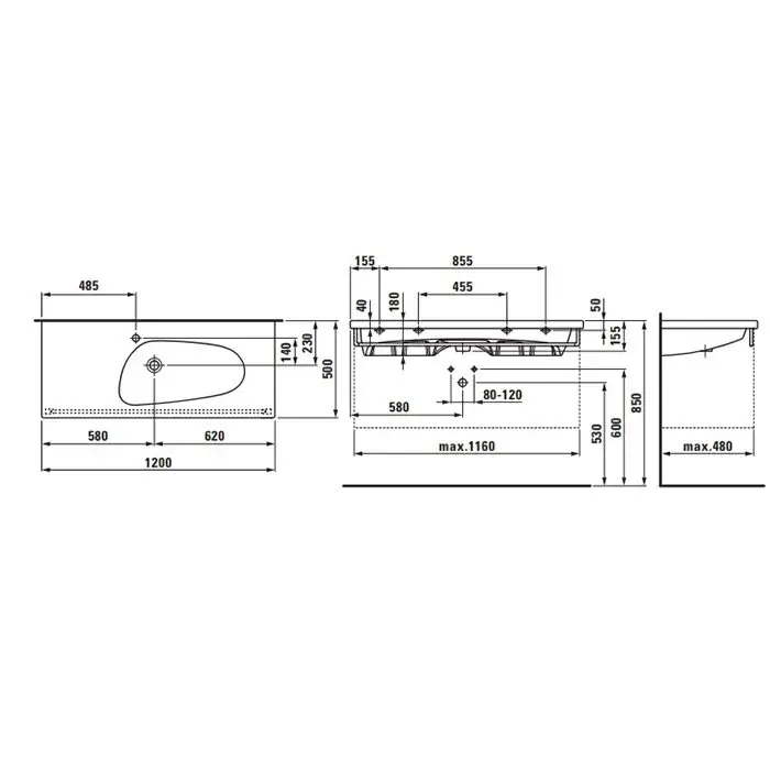 Laufen Palomba Раковина 120х50хh4 см, без отв. под смеситель, цвет белый 8.1480.6.000.109.1