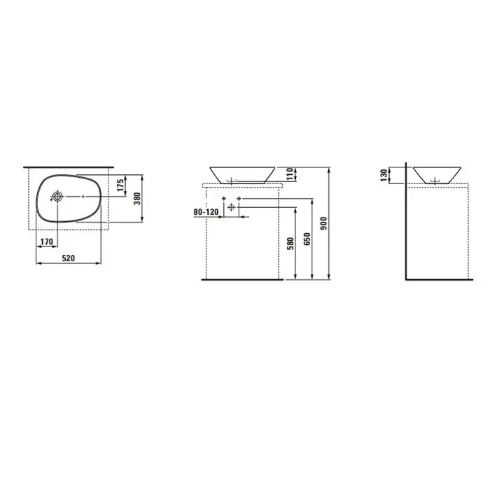 Laufen Palomba Раковина-чаша 52х38хh13 cм, без отв. под смеситель, цвет белый 8.1680.2.000.112.1